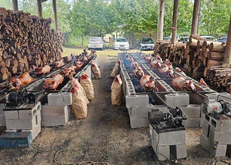 Assando os porcos